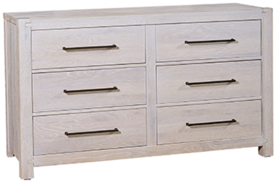 Made in the USA from solid American white oak; this dresser with six drawers; shown in a washed white oak finish; offers a casual style to any bedroom in your home. It features a distinctive exposed tenon joint at the top and bottom.Read More