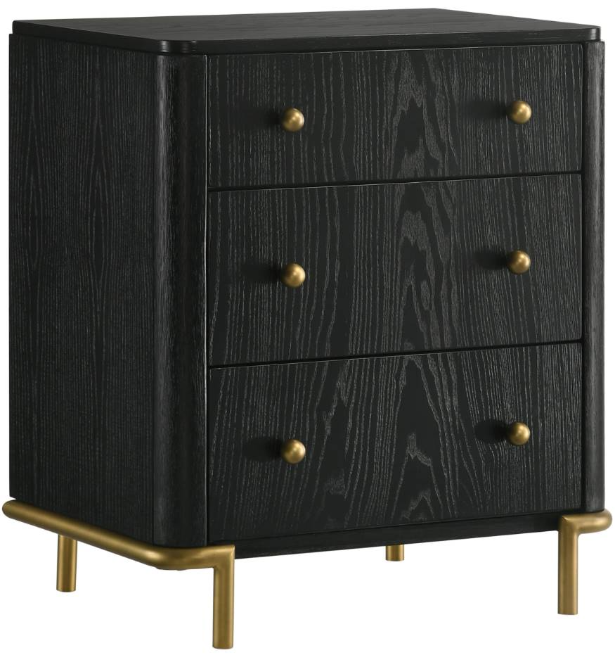 Modern nightstand offers three drawers for easy and accessible bedside storage