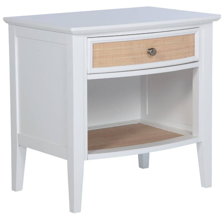 Coastal details highlight a modern one-drawer nightstand to bring compelling, fresh bedside style