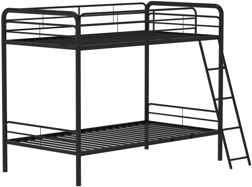 Maximize sleeping space with this modern metal bunk bed, designed for strength, safety, and everyday functionality. Its powder-coated glossy finish enhances the sleek silhouette, while full-length guardrails on the top bunk ensure secure rest.Read More