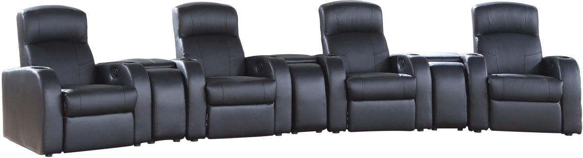 *7-piece home theater recliner set includes 4 recliners and 3 console wedges only. Other piece sold separately.