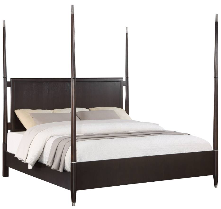 A modern four-poster bed with stately flair and a rich, refined look in your bedroom